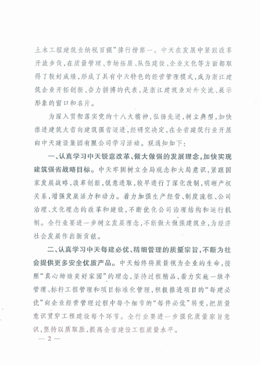 《浙江省住房和城乡建设厅关于在全省建筑行业开展向利来w66建设集团有限公司学习活动的通知》